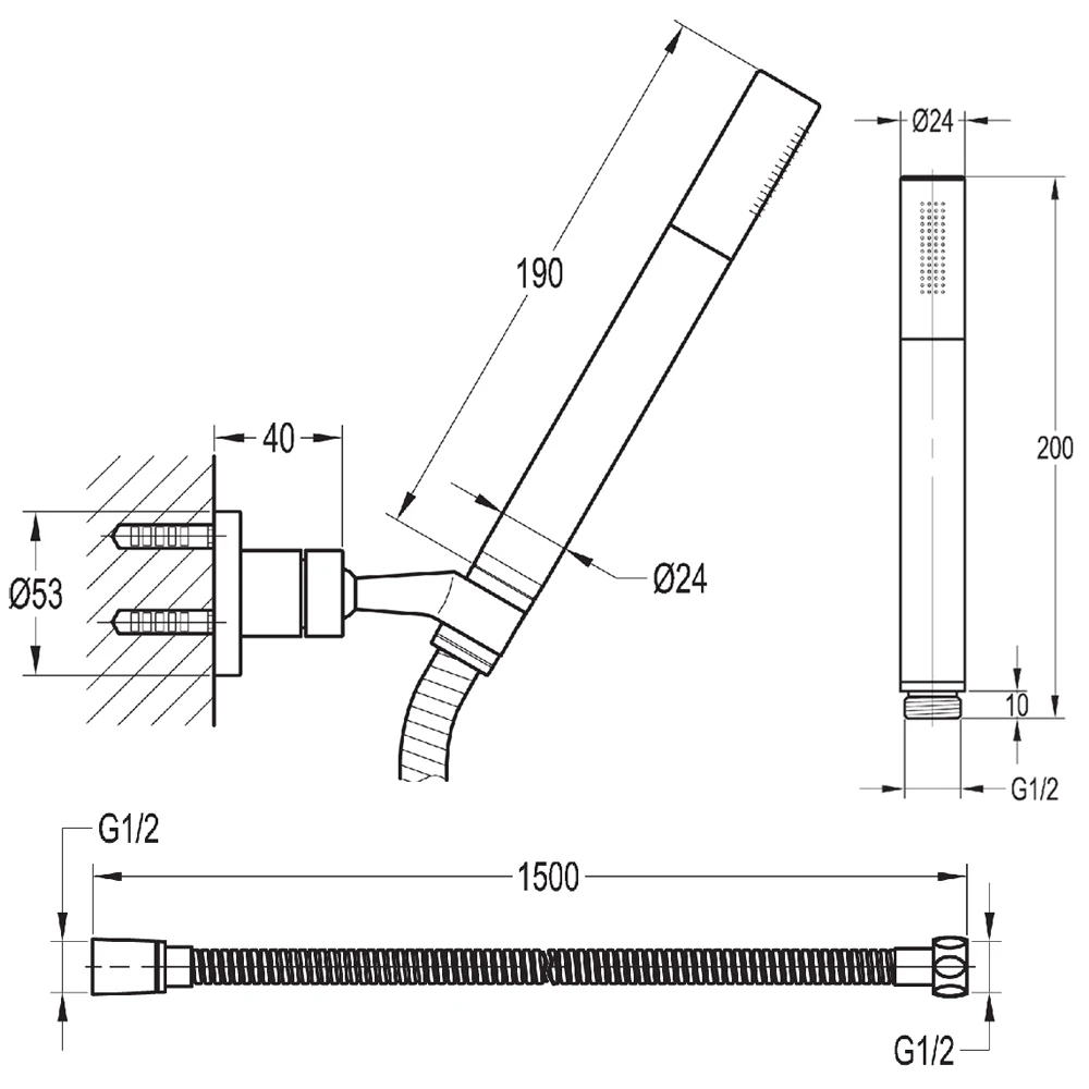 Annecy handset kit with KI036 handset, KI200D hose and wall bracket